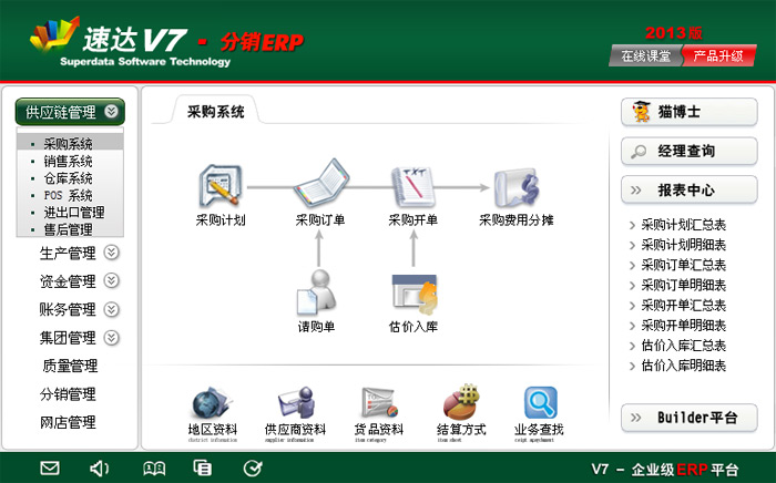 《速達(dá)V7-分銷ERP-工業(yè)版》是一款集進(jìn)銷存管理、財(cái)務(wù)管理、生產(chǎn)管理、分銷管理、CRM管理、OA管理為一體的分銷管理解決方案,平臺(tái)滿足現(xiàn)代企業(yè)經(jīng)營環(huán)節(jié)、機(jī)構(gòu)類型、生意模式多樣化的特征,突出了對(duì)營銷體系的分散式管理和分銷控制。產(chǎn)品通過互聯(lián)網(wǎng)將企業(yè)總部與代理商、分銷商科學(xué)地聯(lián)系在一起,實(shí)現(xiàn)實(shí)時(shí)地提交業(yè)務(wù)單據(jù)、查詢產(chǎn)品供應(yīng)和庫存、獲得市場銷售信息及客戶資源。為企業(yè)的業(yè)務(wù)經(jīng)營與合作提供了全新的管理模式。