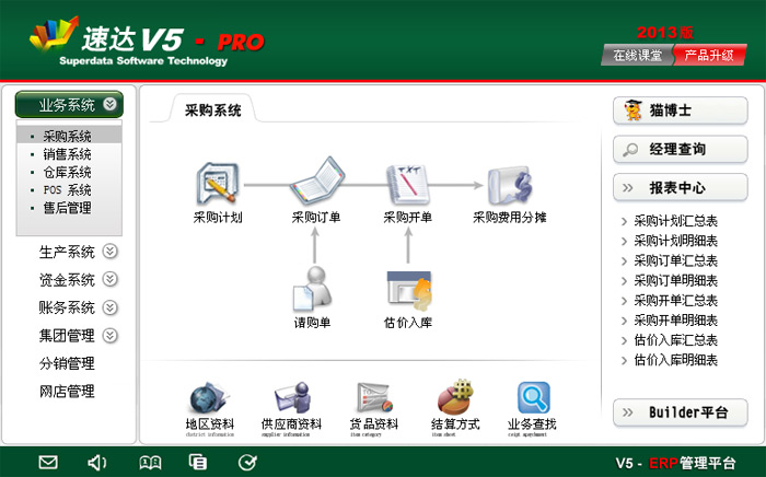 《速達(dá)V5-PRO-工業(yè)版》作為ERP管理平臺,特別適合中型企業(yè)使用。平臺全面實(shí)現(xiàn)供應(yīng)鏈業(yè)務(wù)管理、生產(chǎn)管理、資金管理、財(cái)務(wù)管理、客戶關(guān)系管理、異地分銷、遠(yuǎn)程配送、多機(jī)構(gòu)集團(tuán)化管理。平臺通過強(qiáng)化業(yè)務(wù)流程控制,多級審批管理,有效地幫助企業(yè)實(shí)現(xiàn)業(yè)務(wù)管理、生產(chǎn)管理、財(cái)務(wù)管理的制度化。平臺科學(xué)地融入Builder-Ⅲ二次研發(fā)工具,真正實(shí)現(xiàn)了產(chǎn)品平臺化,滿足企業(yè)管理個性化需求,全面提升企業(yè)管理的能力。