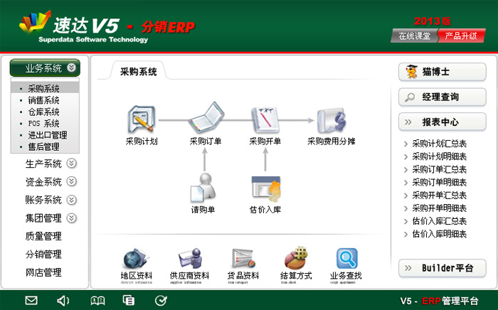 《速達(dá)V5-分銷ERP-工業(yè)版》是一款集進(jìn)銷存管理、財(cái)務(wù)管理、生產(chǎn)管理、分銷管理、CRM管理、OA管理為一體的分銷管理解決方案,平臺(tái)滿足現(xiàn)代企業(yè)經(jīng)營環(huán)節(jié)、機(jī)構(gòu)類型、生意模式多樣化的特征,突出了對營銷體系的分散式管理和分銷控制。產(chǎn)品通過互聯(lián)網(wǎng)將企業(yè)總部與代理商、分銷商科學(xué)地聯(lián)系在一起,實(shí)現(xiàn)實(shí)時(shí)地提交業(yè)務(wù)單據(jù)、查詢產(chǎn)品供應(yīng)和庫存、獲得市場銷售信息及客戶資源。為企業(yè)的業(yè)務(wù)經(jīng)營與合作提供了全新的管理模式。